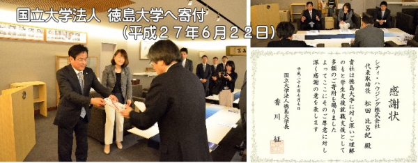 学生支援・就職支援を目的として「国立大学法人徳島大学」へ寄附(100万円)を行いました。