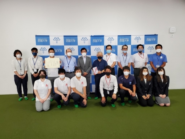 弊社には四国大学OBのスタッフが8名おり、贈呈式には弊社から四国大学OBのスタッフ3名も参加させていただきました。