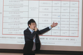 今回のテーマは「地震の脅威はもうそこまで!」地震対策セミナーと題しまして社内講師による、地震への高まる不安、原状を正しく理解し、適切な対策を練る為の「キーポイント」などについて、開講させていただきました。
