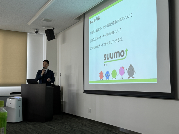 第一部では「空室対策を成功へ導く(戦略)と(決断)」と題しまして、弊社カスタマーサービスグループの森川より、繁忙期に向けてオーナー様が取るべき施策についてご説明させていただきました。
