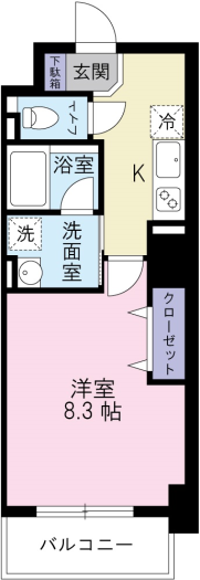 間取りは1Kタイプ。広々とした使いやすいお部屋です。