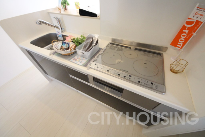 キッチンはシステムタイプになっていて、お料理の幅が広がります。