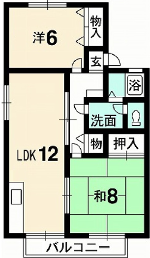 徳島市大原町にある2LDKのファミリー向け物件です。