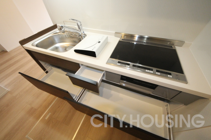バストイレ別、照明器具、室内洗濯機置き場、エアコン[1基]、フローリング、ベランダバルコニー、下駄箱、洗髪洗面台、独立洗面台、室内物干し、温水洗浄便座、暖房便座、浴室内乾燥機、1坪タイプ浴室、給湯[LPガス]、システムキッチン、IH調理器具[IH2ヶ口+ラジエントヒーター1ヶ口]、モニタ付インターホン、自動湯はり、床下収納