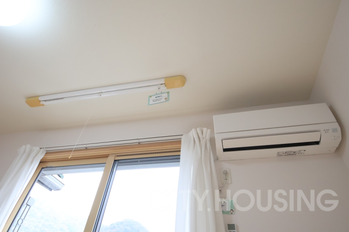バストイレ別、シャッター雨戸、室内洗濯機置き場、エアコン[1基]、フローリング、ベランダバルコニー、下駄箱、脱衣所、洗髪洗面台、独立洗面台、駐輪場付、ウォークインクローゼット、室内物干し、温水洗浄便座、暖房便座、対面式キッチン、給湯[LPガス]、ガスコンロ対応、CATV(基本ch)、モニタ付インターホン、南向き、1坪タイプ浴室、角部屋、光インターネット[フレッツ光,Pikara]