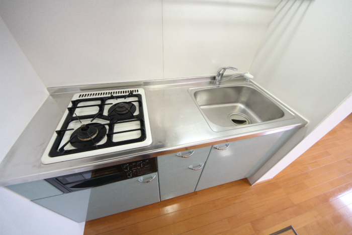 また、キッチンはグリル付きの2口ガスコンロ完備で、お料理好きの方にはもってこいですね。