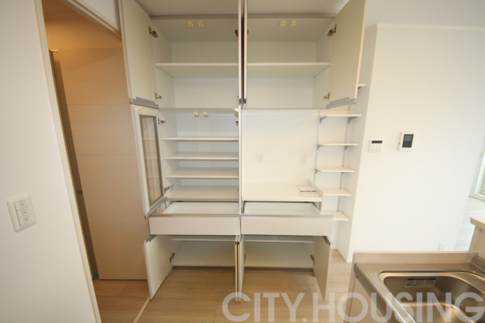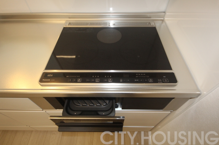 バストイレ別、室内洗濯機置き場、フローリング、南向き、ベランダバルコニー、下駄箱、脱衣所、洗髪洗面台、独立洗面台、調理器具、照明器具、自動湯はり、ウォークインクローゼット、角部屋、追い焚き機能、温水洗浄便座、暖房便座、浴室内乾燥機、システムキッチン、対面式キッチン、IH調理器具[IH2ヶ口+ラジエントヒーター1ヶ口]、CATV(基本ch)、モニタ付インターホン、ペアガラス、給湯[LPガス]、エアコン[3基]、光インターネット[あり]